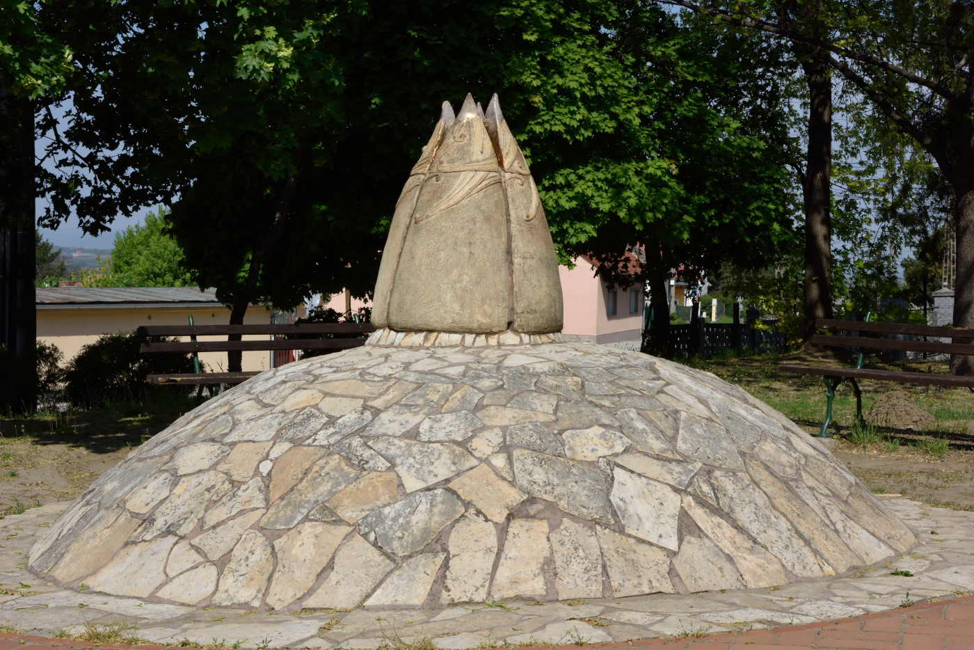 Az alkotás alatti dombon az alábbi, az elcsatolt országrészeken található települések nevei olvashatóak kőlapokba faragva: Holics, Farkaslaka, Nagykikinda, Károlyváros, Verespatak, Pöstyén, Kórógy, Csáktornya, Gyergyó, Varazsd, Kolozsvár, Beszterce.